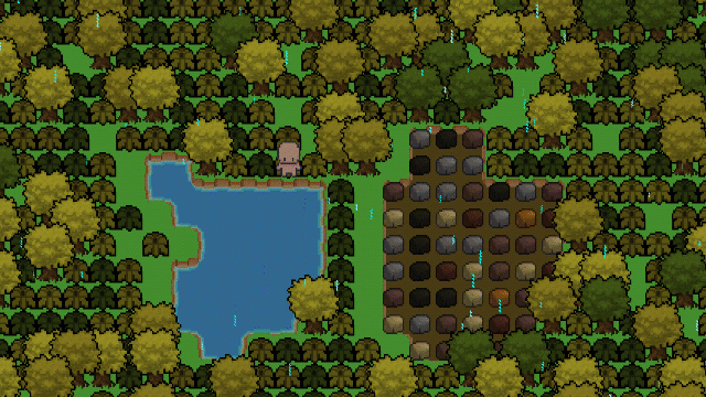 The main change with this has to do with tile size and render window. Previously every tile was 16x16 upscaled to 32x32 and zoomed in to create very large looking tiles. I ended up deciding to no longer upscale the tiles and no longer zoom in. This creates a much larger map in the same window that looks a bit better at the cost of slightly smaller objects. The reason behind this is initially I wanted to have a heavy focus on micromanaging just a small number (15-20) farm tiles; however, after some playing I personally felt like this wasn't very rewarding/fun. The mechanics are all still the same in managing a crop; however, they are much less micro-managey in feel. (i.e. You don't have to constantly adjust a tiles water level every second, you have to get it to the level it needs then just check back every minute or so to make sure it's still in the range it needs to be).